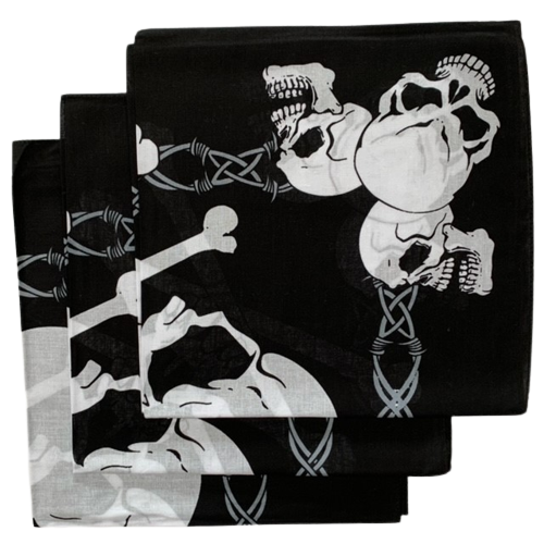 3 PK Skull Bandanas - 22" x 22" 100% Cotton (3 Skull Corner)
