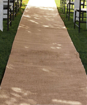 Additionally, we offer two choices of 36" wide aisle runners with serged edges for a more polished look. Keep in mind that due to the natural characteristics of burlap, published dimensions are approximate and may vary. Find the ideal burlap aisle runner to complement the ambiance of your wedding day.