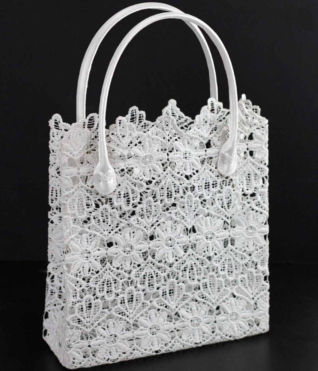 Introducing our Lace Embroidery Bags with Handles, a delicate and stylish accessory for your everyday needs. The elegant white lace design adds a touch of sophistication to this versatile bag. Great as a flower girl bag, it brings an extra charm to any special event. Available in various sizes and colors