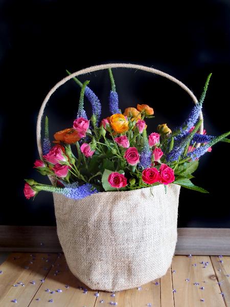 Experience practical sophistication with our tote bag. Measuring at 6-1/2" in diameter and 6" in height, this versatile accessory is equipped with an 8" handle for easy carrying. Please be aware that the tote bag does not include the flowers shown in the photo, allowing you the freedom to personalize and use it according to your style and needs. Whether it's for daily essentials or a special occasion, this tote combines functionality with a touch of elegance. Dimenstions: 6-1/2" D x 6" H with 8" handle