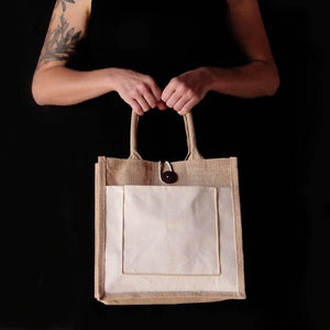Jute Tote with Canvas Pocket