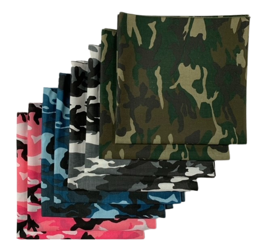 Made in the USA Camo Bandanas 8 Pk 22" Pink, Blue, Green & Urban