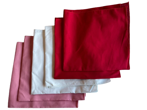 Made in the USA Solid Red, White, Pink Bandanas 6Pk 22" x 22"