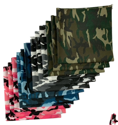 Made in USA Camo Bandanas 12 Pack 22" Pink, Blue, Green & Urban