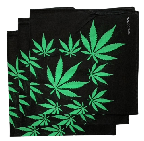 Marijuana Bandanas Green Leaves 22" x 22" - 100% Cotton (3 pk)