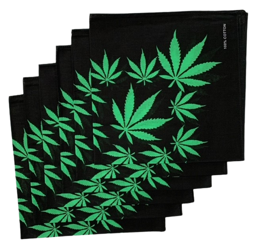Marijuana Bandanas Green Leaves 22" x 22" - 100% Cotton (6 pk)