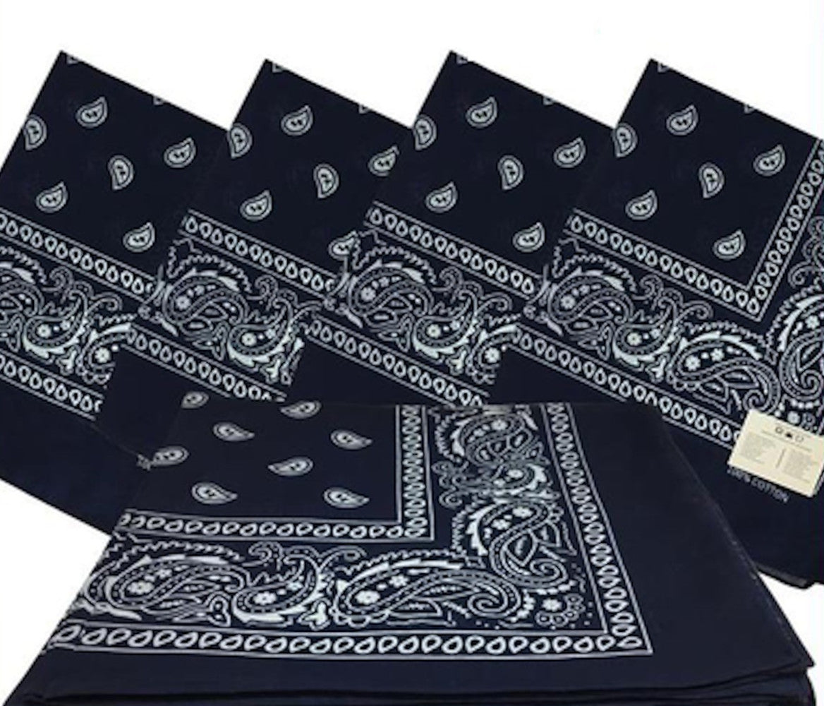 Navy Paisley Bandanas (12 Pack) 22" x 22" 100% Cotton