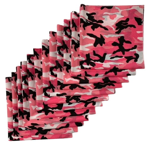 Pink Camo Bandanas 12 Pack 22" x 22" Made In USA