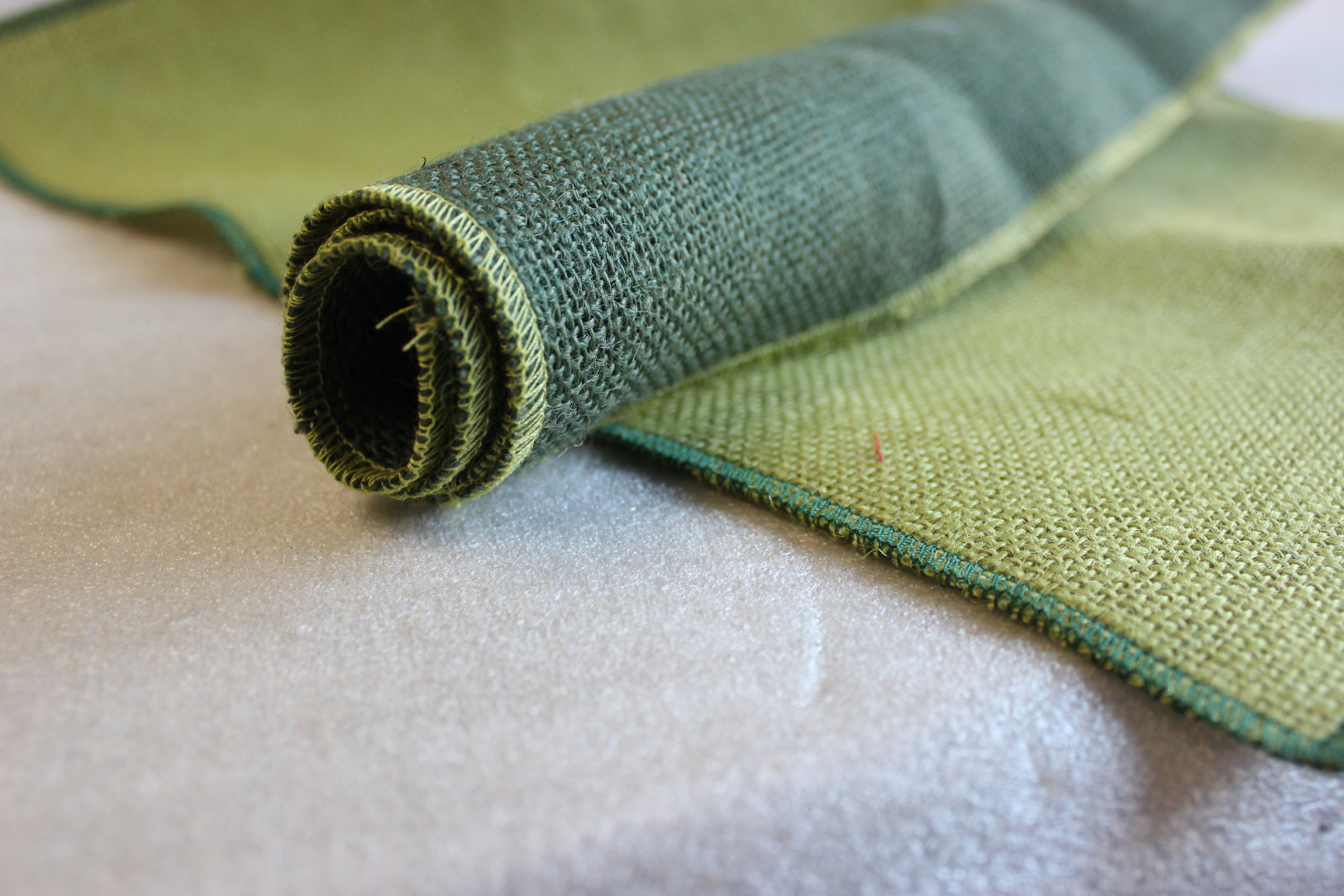 Set of One Avocado Table Runner With Hunter edges and Four Contrasting Hunter Napkins with Avocado edges. Napkins are 14" x 14". Runner dimension are 14" wide with Lengths available in 72", 90", 108", or 120". Custom lengths available upon request.