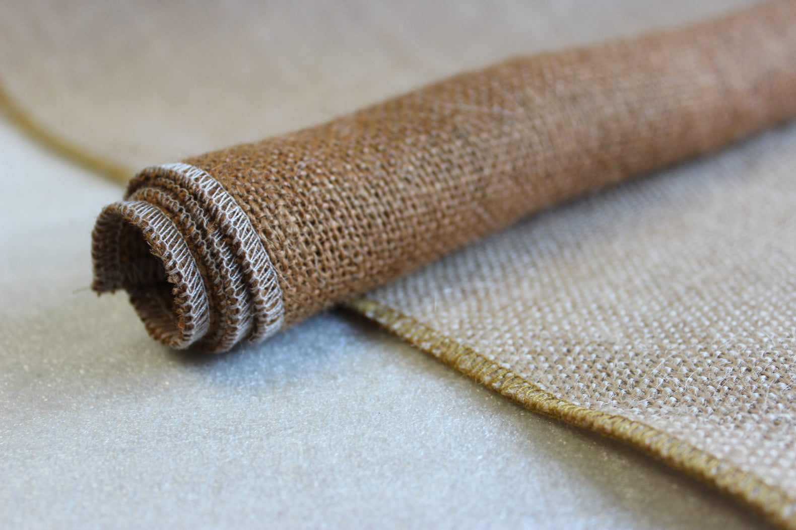 Set of One Florida Sand Table Runner With Idaho edges and Four Contrasting Idaho Napkins with Florida Sand edges. Napkins are 14" x 14". Runner dimension are 14" wide with Lengths available in 72", 90", 108", or 120". Custom lengths available upon request.