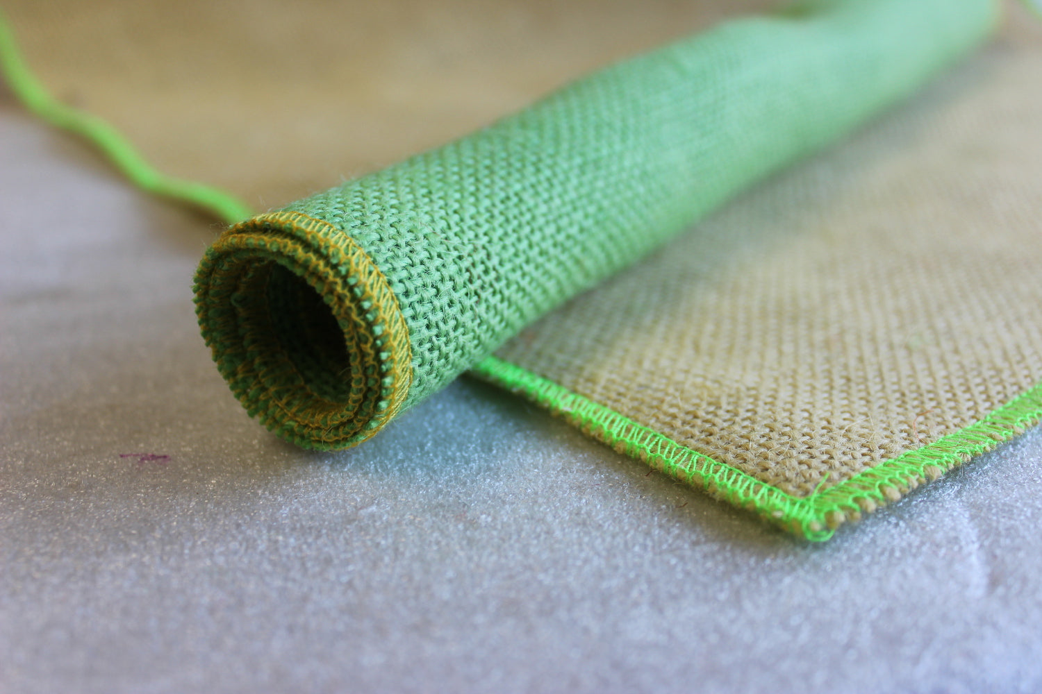Set of Sage Runner Lime Edge w/ 4 Contrasting Napkins
