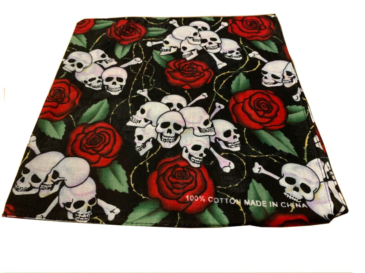 Skulls & Roses Bandana 22" X 22" 100% Cotton
