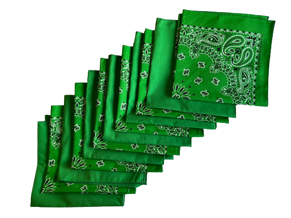USA Made Paisley & Solid Green Bandanas 12 Pk 22" 100% Cotton