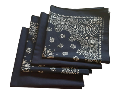 USA Made Paisley & Solid Navy Bandanas 4 Pk 22" 100% Cotton