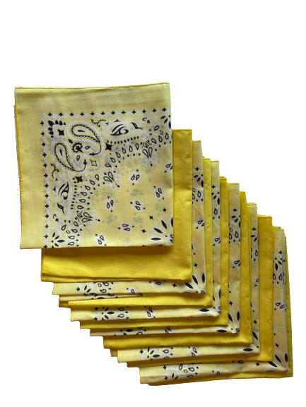 USA Made Paisley & Solid Yellow Bandanas 12 Pk 22" 100% Cotton