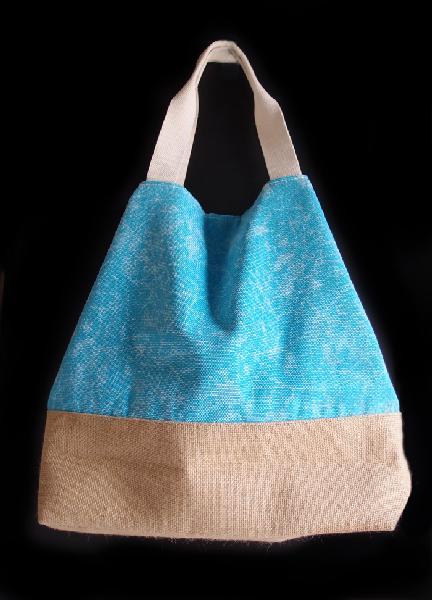 Washed Canvas L/Blue Tote Bag With Burlap - 14"W x 16"H x 5 ½"D